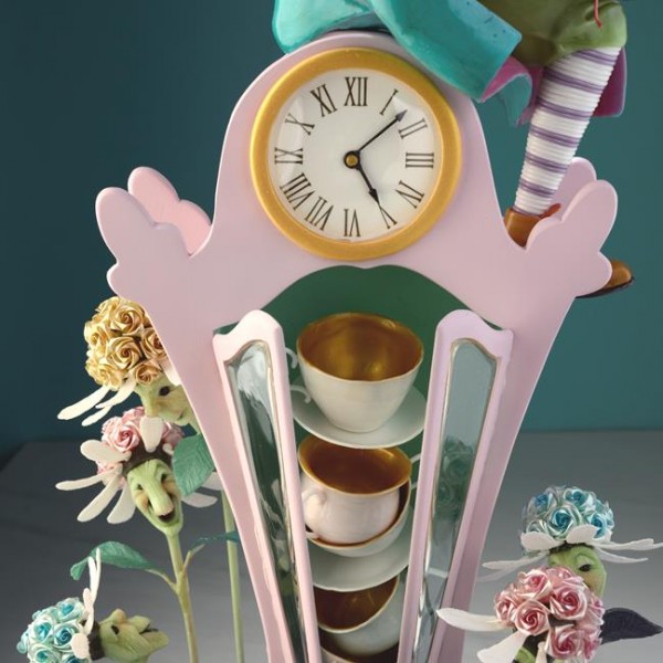 - une peinture à l’aérographe sur pastillage, une fleur d’exception en sucre tiré, un sujet en sucre soufflé, des éléments en sucre pour agrémenter la pièce artistique (en sucre coulé, pastillage, soufflé, et Pastillage peint).